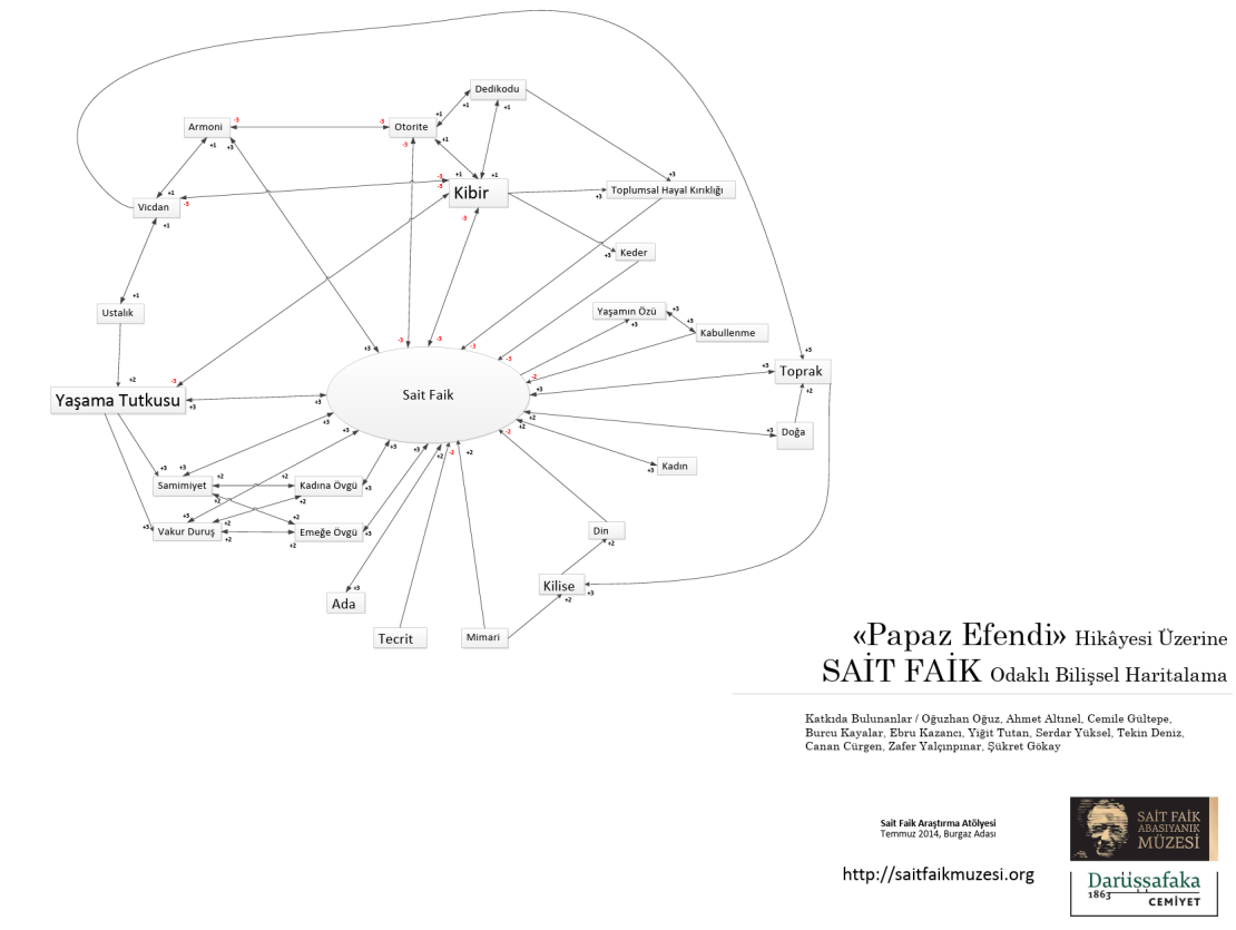 Sait Faik’in “Papaz Efendi” adlı hikâyesinin merkez alındığı atölye çalışmasında iki aşamalı odaklanma yöntemiyle çeşitli sosyolojik, psikolojik, dilbilimsel ve edebî çözümlemeler etkileşimli olarak katılımcılar ve moderatörler tarafından dile getirildi. Forum sonucunda ortaya çıkan 30’a yakın kavram ve kavramlar arasındaki etkileşimler üç adet bilişsel haritayla temsil edilerek araştırma sürecine dâhil oldu.